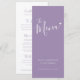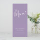 texto de caligrafia moderna simples roxo suave e branco menus de jantar de casamento ou menu de evento especial. Edite este menu de 4 pratos com suas próprias palavras. Simples, mas moderno com um pequeno menu de coração branco. Ideal para um casamento simples com tons roxos ou evento temático moderno de coração. © Design www.mylittleedenweddings.com na zazzle.