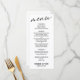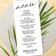 A distinção desta suíte é devida à fonte de escrita manual contemporânea usada para frases de sotaque. Nesta peça específica, esta elegante fonte foi usada para criar um gráfico que simplesmente lê "menu" no topo. Use os campos modelo para adicionar seus detalhes pessoais. O plano de fundo pode ser alterado para qualquer cor que você preferir. 158 //