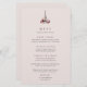 Elevem seu chá de panela ou chá de fraldas com este elegante cartão de cardápio de inspiração francesa da coleção Bonjour Bébé de Redwood & Vine Design Co. Apresentando um fundo de pincel suave, ilustração romântica da Torre Eiffel e tipografia quic, este design de cardápio adiciona sofisticação parisiense à sua capa. Perfeito para exibir seus cursos em uma refeição ou buffet, ele coordena-se perfeitamente com o resto da coleção de Bonjour Bébé para uma aparência coesa.