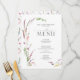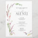 Torne o seu casamento ainda mais especial com este Trendy Elegant Wildflower Floral Watercolor Menu! Apresentando um arranjo casual e bonito de lavanda lilás, flores silvestres pinceladas, amarelas e azuis e verde botânico para um olhar verdadeiramente espantoso. Quer você esteja planejando uma cerimônia de jardim ou uma recepção de casamento interior, este menu cumprimentará seu estilo perfeitamente. Personalize os seus detalhes e torne-os mais especiais com a adição de uma bela caligrafia manual moderna para um toque pessoal. Entre em contato com o designer para produtos correspondentes. Veja aqui: https://www.zazzle.com/collections/elegant_wildflower_floral_watercolor_wedding-119881521584127213 Copyright Anastasia Surridge for Elegant Invites, todos os direitos reservados.
