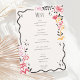 Um cartão de cardápio do estilo manuscrito de borda ondulada, seguindo a última tendência do papel de carta de casamento. Um casamento divertido contemporâneo e design.