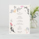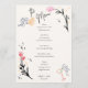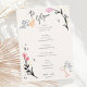 Um cartão de cardápio estilo escribble desenhado à mão, seguindo a última tendência no papel de carta do casamento. Quintada e uma divertida fronteira com design floral para um janto de casamento contemporâneo.
