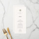Árvore Tropical de Palma de Aquarela, cardápio de casamento e cartões de agradecimentos. Recursos, tipografia negra moderna com menu de três cursos na frente e obrigado, você envia uma mensagem atrás.