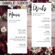Apresentando o Menu Casamento Duplo e a Lista de Bebidas da Coleção de Elegância - uma oferta refinada e abrangente que mostra suas seleções culinárias e de bebidas com sofisticação e estilo. Do lado da frente, admirar a elegância de um cardápio de casamento totalmente personalizável. As linhas limpas e a estética moderna da Elegance Collection estabeleceram o palco de uma experiência de jantar excepcional. O menu é cuidadosamente categorizado em Ataques, Cursos Principais e Desserts, permitindo que você forneça uma visão geral concisa, mas abrangente, das ofertas deliciosas. Vire o cartão e descubra uma apresentação igualmente refinada da sua Lista de Bebidas Alcoólicas. Cocktails, Vinhos, Espíritos e Cervejas são apresentados elegantemente, cada um com uma seleção curada de três opções. Como parte da Coleção de Elegância, este Menu de Casamento Duplo e a Lista de Bebidas é totalmente personalizável para garantir uma estética coesa e elegante que se alinha perfeitamente ao seu estilo único, criando uma sinfonia visual que define o tom para a sua experiência culinária e de bebidas. Sofisticado e deliciosamente abrangente, o Menu de Casamento Duplo e a Lista de Bebidas da Coleção de Elegância oferecem uma apresentação integrada das ofertas culinárias e de bebidas da sua celebração. É uma adição refinada à sua papelaria de casamento, garantindo que cada detalhe contribui para a elegância e sofisticação gerais do seu dia especial.