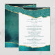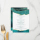 Celebre em estilo com estes modernos e muito modernos cartões de cardápio de casamento. O design apresenta uma turquesa de cor d'água e um fundo de agitação dourado com texto de letra de script manual correspondente. Esta design é fácil de personalizar com a sua redação de eventos especiais e os seus convidados ficarão entusiasmados quando virem estes menus fabulosos.