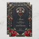 Um coração gótico impressionante desenhado num vermelho profundo e apaixonado. Esse coração simboliza o amor e a conexão do casal e é enquadrado por delicados embelezamentos de ouro. Esses sotaques dourados acrescentam um toque de luxo e sofisticação ao design. Asas de ouro majestosas se desdobram elegantemente do coração, adicionando um toque dinâmico ao design. As asas são detalhadas e exuberam a graça enquanto transmitem um senso de liberdade e infinidade - perfeito para o início de uma vida juntos.