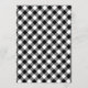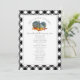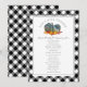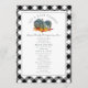 Menu de Ação de Graças com ilustração de uma abóbora azul com folhas de outono. Borda de xadrez de búfalos preto e branco e inverso. Todo texto pode ser personalizado.