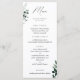 Verde botânico natural com aquarela. O gráfico "Menu" da caligrafia moderna e elegante, modelo de tipografia dinâmica com várias linhas para os seus itens de menu personalizados. A cor de apoio mostrada no verde da floresta escura pode ser personalizada.