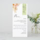 Porquê gastar cartões de lugar e cartões de menu quando pode ter um Menu elegante All-in-one personalizado com cada nome de convidado! Design contemporâneo, simples e elegante com detalhes florais de cor d'água refinados numa bela mistura de pêssego, laranja, pincel, rosa poeirento, creme e matizes de champanhe. Elementos modernos de caligrafia escrita à mão. Fixe no canto superior direito em tom verde com o nome de convidado em preto. De volta em verde como uma faixa. Capacidade de alterar ambas as cores de distribuição ou vice-versa selecionando "personalizar mais". NOTA: adicione um nome de convidado a cada menu, adicione um menu no carrinho de compro; depois volte ao menu, adicione o segundo nome de convidado e adicione o menu para comprar o carrinho...continue com este processo com todos os nomes de convidados na sua lista. Zazzle não recebe listas de nomes de convidados para o impressão. Para primeiros nomes de convidado curtos, adicione com sua barra de espaço do teclado alguns "espaços" vazios antes do nome ao centro. Design disponível em uma variedade de opções de cores. Parte da nossa coleção "Peach Floral Delight and Green" com uma variedade de produtos de coordenação disponíveis. Visite a coleção inteira em: https://www.zazzle.com/collections/peach_floral_delight_and_green-119552409662994360