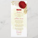 Flores vermelhas escuras e brancas românticas com folhas de ouro, cartões de cardápio botânico. Os detalhes de brilho são simulados.
