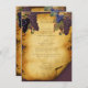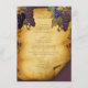 Vinha, adega, cardápio de casamento. Fundo de papel antigo com bordas curvas e rasgadas sobre fundo de burlôncio profundo. Púrpura bonito e acentos de uva azul.