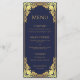 Menu Vintage Azul Marinho Faux Dourado Casamento Elegan