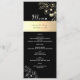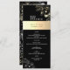 Vintage, botânica, boho, chic, caligrafia, cardápio de casamento moderno, elegante, preto e dourado com rendas florais douradas.