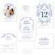 Menu Vintage Blue Floral Frame Elegante Casamento