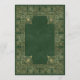 Este elegante cardápio de casamento apresenta um quadro de ouro vintage em um fundo verde angustiado imitando um cobrir antigo de livro. Personalize o texto decorativo dourado com os detalhes do menu. O design de quadro é repetido na parte traseira da placa.