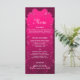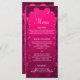 Este menu de casamento rosa muito elegante apresenta um design clássico, estilo vintage, que tem elementos de rolagem definidos como dentro do quadro de ondulação ao redor das bordas do cartão. Todos os detalhes de texto para a comida da recepção de casamento podem ser personalizados para se adequarem ao seu próprio casamento, e também há espaço para personalizar a parte de trás do cartão com o monograma da noiva e do noivo. Seus hóspedes ficarão impressionados com este design elegante e elegante e com a tipografia clássica tradicional em letras brancas e fontes fáceis de ler.
