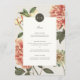 Apresente seu menu de casamento com elegância de eterno. Este menu da Coleção Cora apresenta florais antigos em salmão mole, terracota quente e verde-caçador rico, lindamente emparelhado com um monograma moderno. Uma mistura perfeita de clássicos e contemporâneos, ela dá o tom para uma celebração inesquecível. Veja o meu compro para outros tamanhos de menu disponíveis!