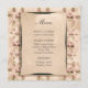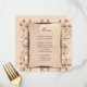 Um menu de casamento vintage com padrão de rosa em um pêssego suave. O menu faz parte de um conjunto completo de convites para o casamento