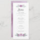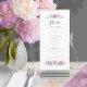 Adicione um menu atraente à decoração da mesa com uma fonte decorativa exclusiva que dispara um buquê de aquarela em pastas moles, de lilás a rosa-orquídea. O inverso tem um fundo de aquarela moderno em coordenação de tons lilás juntamente com suas iniciais e data do casamento. Estes menus de casamento são perfeitos para casamentos de jardim. Procure ID654 para ver o conjunto de casamento correspondente.