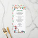 Get ready for a festive Christmas season. Holiday images of a snowman, Christmas presents, stockings, and more in a watercolor effect feature on this menu card to make the holiday special. Add a festive touch to your table throughout the holiday season or at a Christmas cocktail party, holiday party, or a Christmas-time birthday party. Available with matching products.