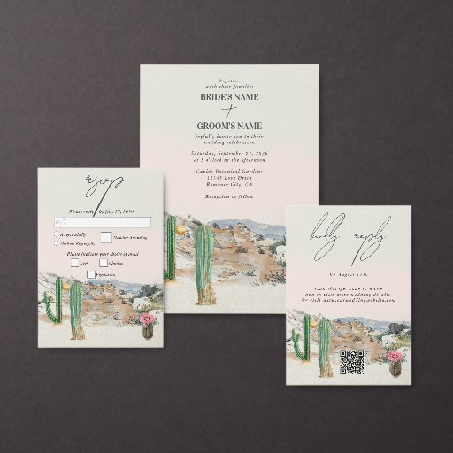 A beautiful watercolor desert cactus landscape wedding design. A unique design that features watercolor desert cactus in a beautiful Boho style landscape with a hint of pink in the background. An elegant design with desert botanical cactus illustrations. A desert themed wedding menu card design with modern dusty pink and neutral color elements. Matching wedding invitations and other stationery items are also available.
