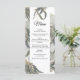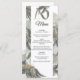 Um belo cardápio de casamento com folhas rústicas de cor aquática de eucalipto, vegetação antiga. Um design elegante ideal para qualquer tema de casamento. Os convites de casamento e outros artigos de papelaria também estão disponíveis.