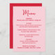 Menu Whimsical Pink and Red Heart Wedding