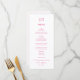 Janto Whimsical Setting Doodle, menu de casamento. Características, Tipografia Cerise Pink com padrão de faixa de rosa claro.