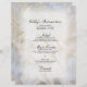 Personalize o bonito Menu da Quinceañera Floral Branca com os detalhes da refeição que você servirá no seu doce janto de celebração ou almoço de 15, adicionando a salada ou o primeiro curso, o primeiro curso, o segundo curso e a sobremesa ou o terceiro curso. Personalize-o com o nome da aniversariante de quinze anos, local da festa e data. Este elegante cardápio personalizado de quinceanera apresenta uma fotografia botânica pintada digitalmente de uma flor branca de craveiro com pétalas encaracoladas.