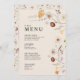 Cartões de menu casados são caracterizados por estilo 'boho', trabalho de arte floral e cores beges, com uma mistura de diferentes estilos de fonte, muitas vezes em diferentes tamanhos, para criar um aspecto exclusivo e eclético que faz deste cardápio a estética natural.