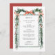 This wedding menu features a watercolor winter greenery garland adorned with pine branches, holly berries, botanical foliage, red ribbon bows, and simple calligraphy. For more advanced customization of this design, please click the BLUE DESIGN TOOL BUTTON above! Matching items are also available.