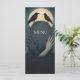 Adicione um pouco do macabro à sua recepção com este cardápio assombrado de casamento à lua. Ilustrado com arte romântica escura — completo com corvos lunares e mãos esqueletais — este menu é ideal para casamentos assustadores, góticos ou temáticos do Dia das Bruxas. Seus convidados ficarão encantados de aperitivo a sobremesa.