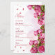 Flores Elegantes Cor-de-Rosa Que Casam Esta Flores Elegante Rosa Cartaz do Menu Casamento irradia elegância com os seus tons cor-de-rosa suave e design floral luxuoso. O cartão apresenta um arranjo delicado de peões cor-de-rosa em cascata ao longo do lado direito, criando um olhar romântico e sofisticado. O fundo é uma sutil mancha pastel, melhorando a beleza dos detalhes florais. A tipografia é uma letra de escrita graciosa, que adiciona um toque de elegância, enquanto os detalhes principais são realçados numa letra serif subestimada para maior clareza. Este convite é perfeito para um casamento com primavera ou jardim, estabelecendo um tom refinado, mas convidativo para seu dia especial. F009
