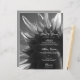 Personalize o bonito Menu de Casamento de Girassol do Jardim Negro e Branco com os detalhes da comida que você servirá na recepção de casamento, almoço ou casamento outono quando você adicionar a salada ou primeiro curso, entrada ou segundo curso e sobremesa ou terceiro curso. Este cardápio de casamento botânico personalizado apresenta uma fotografia floral branca e preta de uma flor de girassol de jardim.