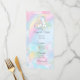Menus de chá de fraldas Unicórnio com adorável unicórnio em uma bela nuvem de arco-íris pastel. Esses menus unicórnios são facilmente personalizados com seus detalhes de evento.