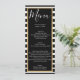 Este metal escovado parece cor dourada, preto e branco, cardápio listrado é perfeito para o casamento formal de seus sonhos. Personalize este menu de casamento com os seus próprios detalhes de casamento e comidas.
