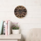 Este relógio do mercado de flores frescas, estilo antigo, apresenta uma montagem horizontal de ardósias de madeira. O antigo acabamento manchado e os numéricos negros clássicos pintados à mão completam o olhar do país americano.