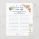 Parte da coleção do Mercado francês, este Jogo de Raça do Nome do Bebê é perfeito para entretenimento rápido. De A a Z, cada convidado tem que pensar em um nome correspondente. O primeiro a completar a corrida ganha! Você, o anfitrião, vai definir o tempo que os hóspedes têm para jogar, assim como se apenas nomes de raparigas, ou, etc. Todo texto é personalizável para corresponder aos detalhes da sua ocasião perfeitamente ↣ basta clicar no botão ‘Personalizar’.