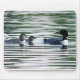 Mousepad com a foto do mergulhão-do-norte comum com os dois pintinhos do mergulhão-do-norte.
