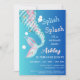 As meninas personalizáveis merecem convite de aniversário, apresentando uma cauda mágica de sereia, em tons de azul-aqua e cor-de-rosa com um toque de ouro.