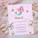 Celebrate your little mermaid on the way with this adorable Under the Sea baby shower invitation, featuring a sweet watercolor mermaid surrounded by a turtle, crab, seashell, starfish, and bubbles.