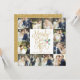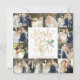 Divulgue o amor e exiba suas fotos de casamento nesta época de festas com este cartão de felicitações chic e moderno de colagem de fotos de Just Married Holiday. Perfeito para o casal recém-casado usar como um anúncio de casamento ou cartão de agradecimento durante as festas. Este cartão faz um bom uso das suas belas fotos de casamento, apresentando uma grade de colagem de 12 fotos única e contínua, combinada com uma escrita dourada festiva que diz "Merrily Ever After" e nosso azevinho pintado à mão em aquarela. No verso, adicione sua própria mensagem personalizada, que é destacada por uma moldura divertida de neve/flocos de neve.