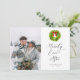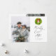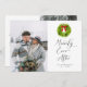 Cartão de anúncio de casamento russo e moderno para a época de férias com a ilustração aquosa de uma coroa de Natal com um arco vermelho. O texto diz "Merrily Ever After." Você pode adicionar uma imagem de segundo na parte traseira do cartão, juntamente com sua mensagem. Cartão de anúncio de Natal perfeito!