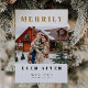 Elegante e na moda de feriado vertical 2-cartão com fotos para os recém-casados celebrando seu primeiro Natal juntos como marido e mulher apresentando texto falsa de ouro brilhante que diz "alegremente para sempre" em fontes modernas e achatadas.