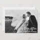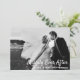 Compartilhe seu amor com estilo com este elegante e moderno cartão com fotos de férias! A frente da placa apresenta uma sobreposição "Merrily Ever After" e a parte de trás tem sua mensagem de feriado personalizada. O texto e as cores podem ser alterados. Design ©Rosalind Moore. Substitua a foto de exemplo por sua.