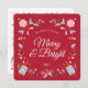 Add a touch of festive charm to your holiday greetings with this elegant Christmas card. Featuring watercolor candy, holly leaves, berries, and vintage drums on a rich red background, it brings a cozy and nostalgic holiday feel. Perfect for sending warm wishes to family, friends, and loved ones during the Christmas season.