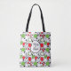 Celebrate the season in style with this personalized holiday tote bag, featuring a cheerful front message like “Merry & Bright” or another message of your choice for a unique gift for loved ones. With its bold red, green, black, and white abstract pattern and festive oval label, this tote is perfect for holiday shopping, gift-giving, or carrying baked goods and handmade treats.