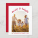 Budget-friendly holiday card featuring your photo in an arch frame. "merry & bright" is written above in modern red typography. You can personalize your names and the year in simple red lettering.