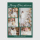 Elegant emerald green folded holiday magnet cards with chic handwritten scrawl MERRY CHRISTMAS above your family photo collage of your 5 favorite 2025 pictures. Modern Christmas magnetic cards featuring one vertical photograph in the center and 4 square pictures on the sides.