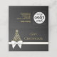 Design de Natal luxuoso e rico com uma esplêndida silhueta de árvore de Natal com flocos de neve ouros. Decorado com um arco de presente de ouro branco sobre um esmagador fundo de cinza preto antracite. Esta certidão festiva é perfeita para a sua pequena empresa ou para oferecer amigos e família.